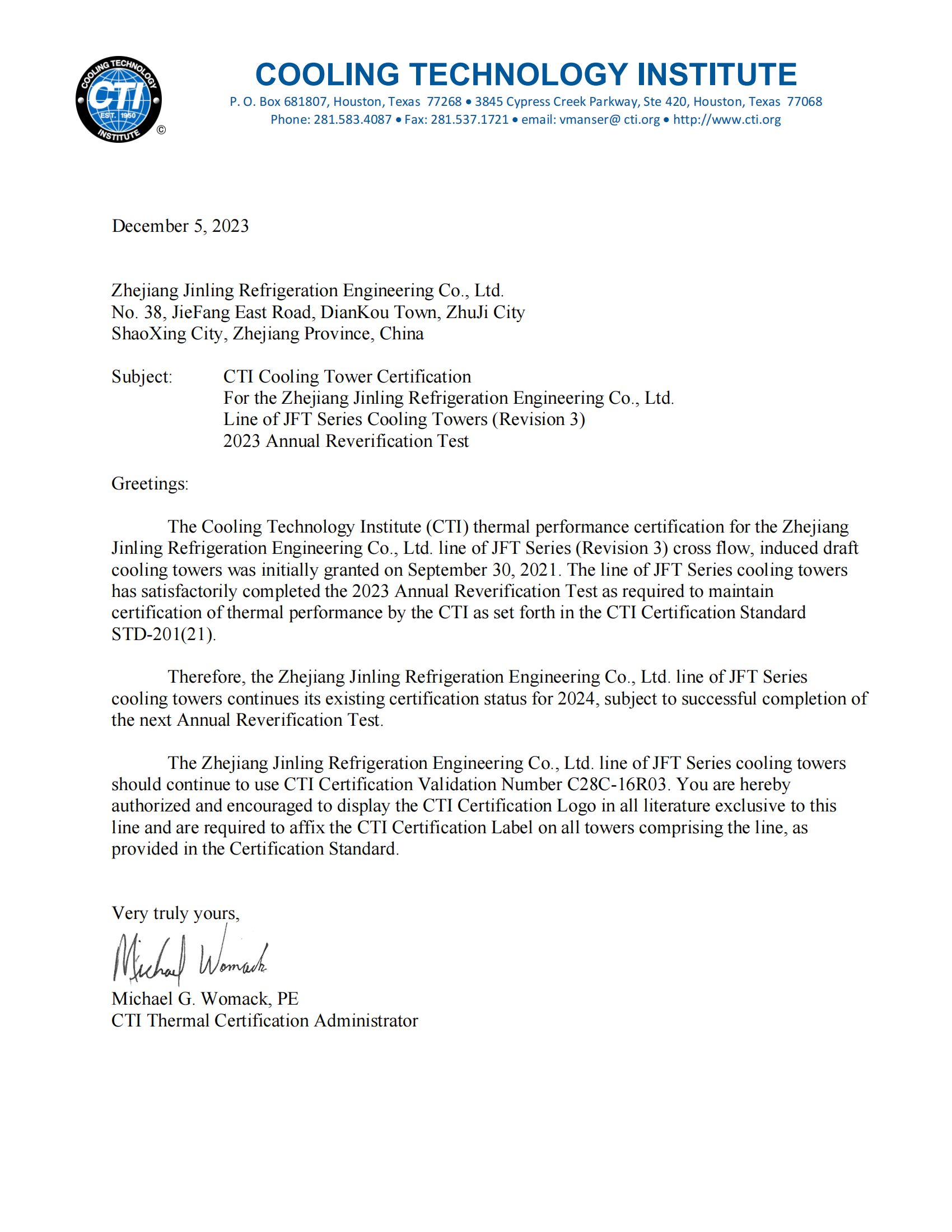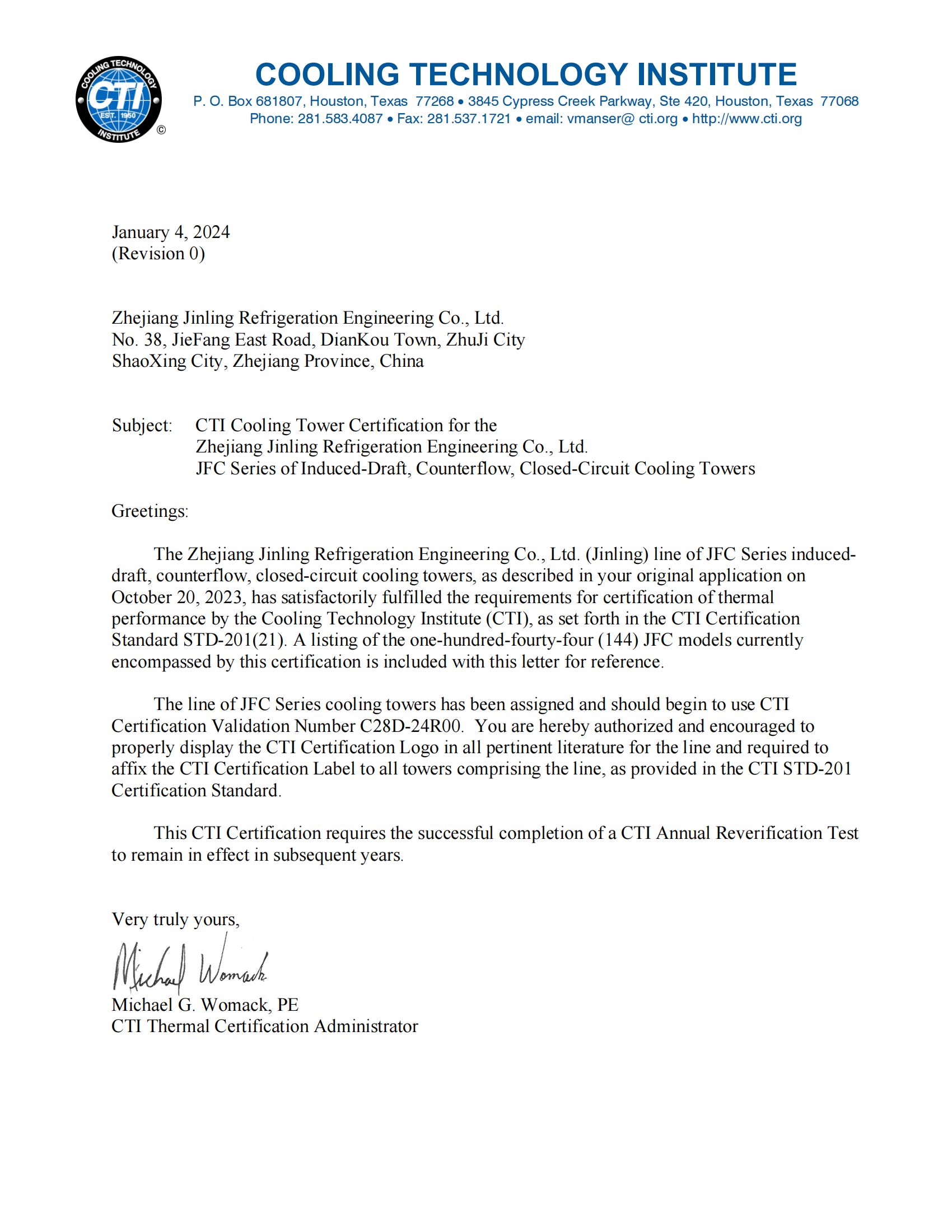JFC系列CTI认证证书